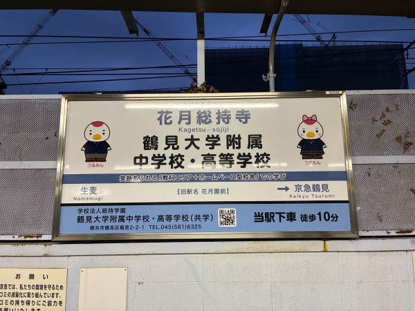 京急花月総持寺駅に設置した本校の看板です。