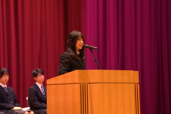 3学年部、4学年部は太祖降誕会奉讃弁論大会を11月21日(金曜日)に、本校講堂にて開催しました。生徒たちは夏休みの課題としてSDGsの目標の中から関心のある分野について弁論の内容を考えてきました。この度登壇したのは、各クラスで代表として選ばれた生徒たちのため、内容・伝え方ともに素晴らしく、講堂ステージに立ち、2ndステージの生徒たちが自分に注目しているという緊張感のある環境のなかでも最大限の力を発揮できたものと思います。また多くの保護者さまにご来場頂けましたこと、御礼申し上げます。