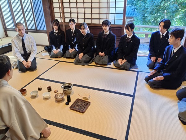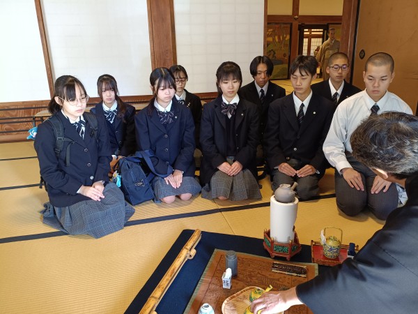 鶴見区にある茶花道協会の主催による茶会が11月4日(月)に行われ、本校茶道部は特別にお招きされ、茶会のバックヤード見学ができました。煎茶・石州流・表千家・裏千家の4席があり、お茶会へは参加できませんでしたが、茶会の終わったところでそれぞれのお席やお道具の説明、各席華やかなお茶席を拝見する機会をいただけて大変光栄でした。