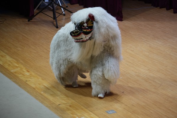 沖縄の獅子舞は「白」だそうで、会場を縦横無尽に動き、生徒たちも大興奮。エイサーなど太鼓のワークショップでは各クラスの代表生徒が琉球のリズムに合わせて舞台上で熱心に参加してくれました。