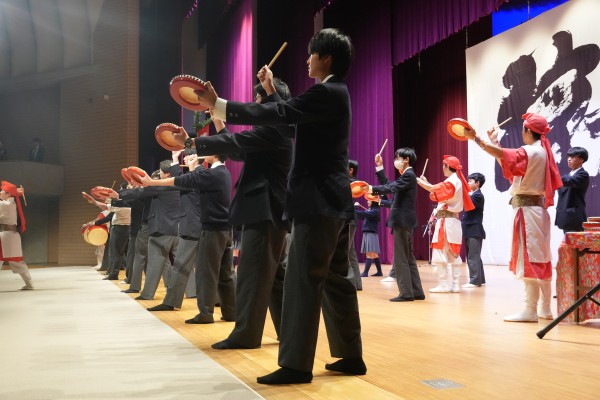 戦後80年、締めくくりの師走、本校恒例の芸術鑑賞会が、静と動のリズムによって圧巻の90分となりました。今年は国内外で評判の、沖縄伝統歌舞集団「琉神」が「沖縄の風」を届けてくれました。