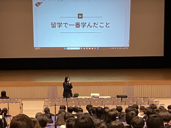 自分自身の言葉で堂々と語る先輩の姿に、生徒たちは身を乗り出して話を聞き、積極的に質問を投げかけていました。