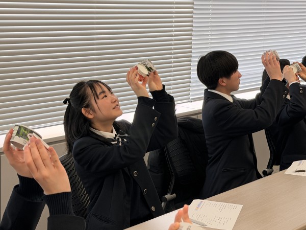 今回の見学では、徹底した「こだわり」が生む商品開発の裏側についてお話を伺いました。例えば、定番の「グリーンティー」のカップに施された鮮度を守るための工夫など、普段何気なく手に取っている商品の裏にある緻密な戦略に、生徒たちは熱心に耳を傾けていました。